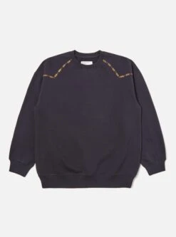 Universal Works Oversized Crew Sweatshirt In Navy Embroidered Brushback