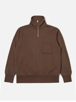 Universal Works Half Zip Sweatshirt In Brown Dry Handle Brushback