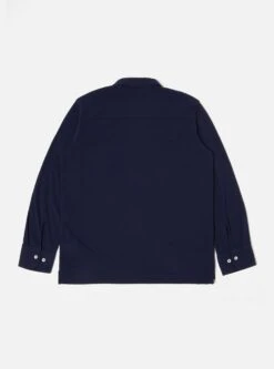 Universal Works Pullover L/S Shirt In Navy Recycled Wool Mix SJ
