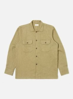 Universal Works L/S Utility Shirt In Olive Soft Flannel Cotton