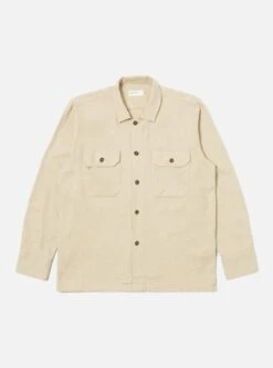 Universal Works L/S Utility Shirt In Sand Soft Flannel Cotton