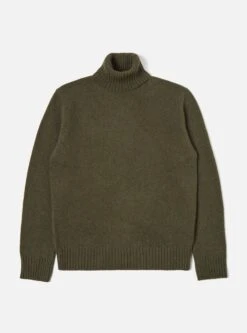 Universal Works Roll Neck In Olive Eco Wool