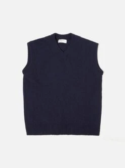 Universal Works Sweater Vest In Navy Eco Wool