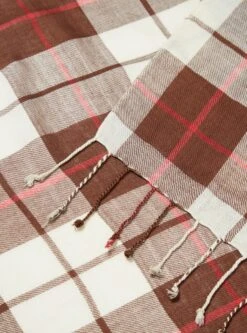 Universal Works Scarf In Mixed Brown Check Rayon