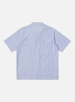 Universal Works Road Trip Shirt In Navy/White EMB Poplin Stripe