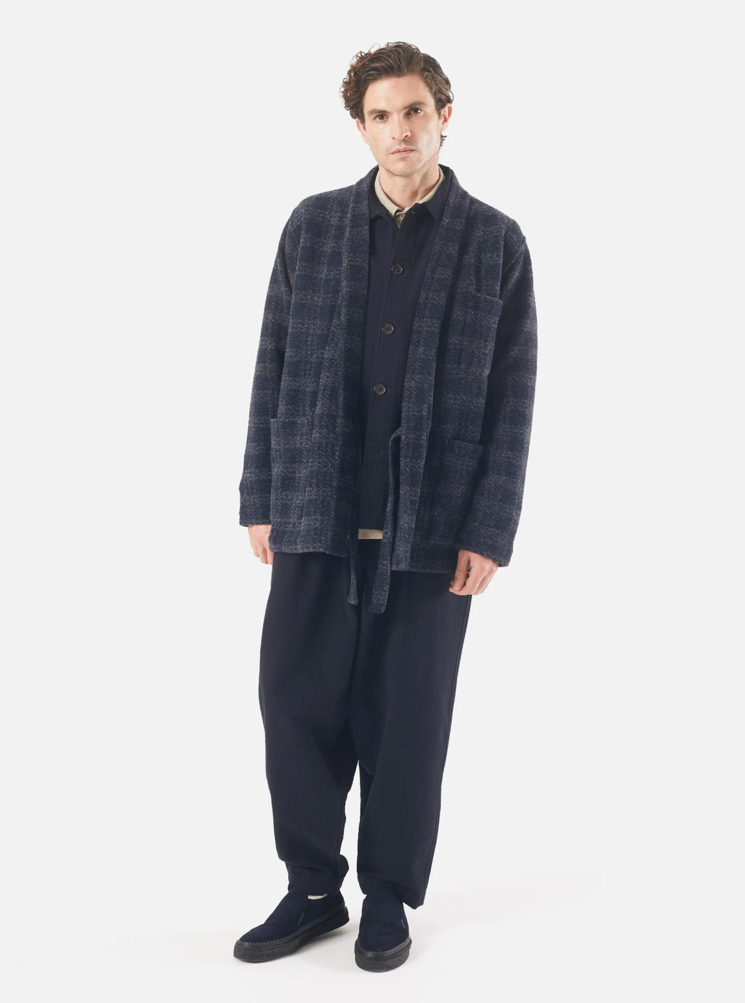 A modern sportswear mix of acrylic and wool, made for us in Italy. Structured, checked and soft: a classy addition to our fleece collection.