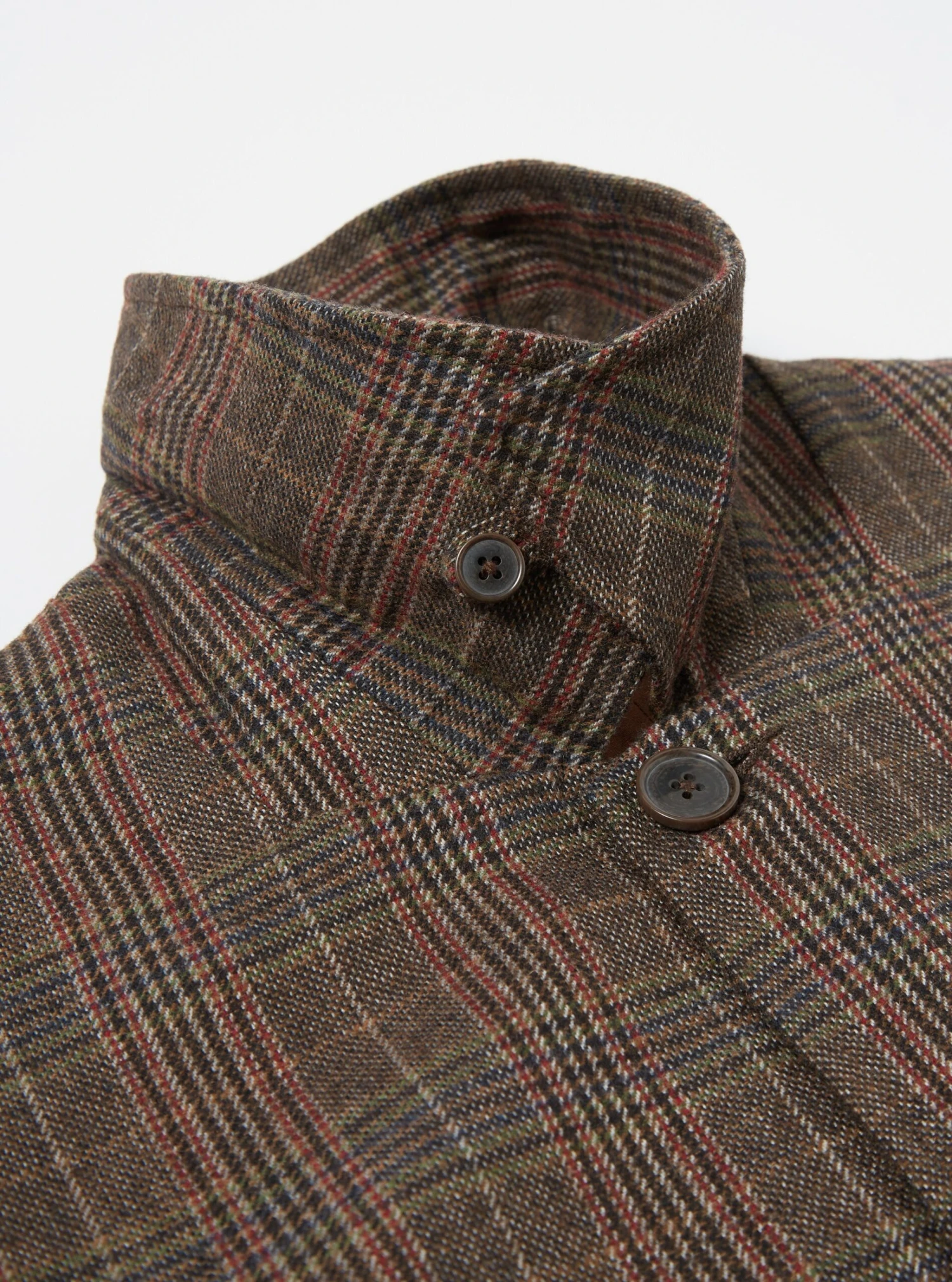 • Single loop-fastened collar button.