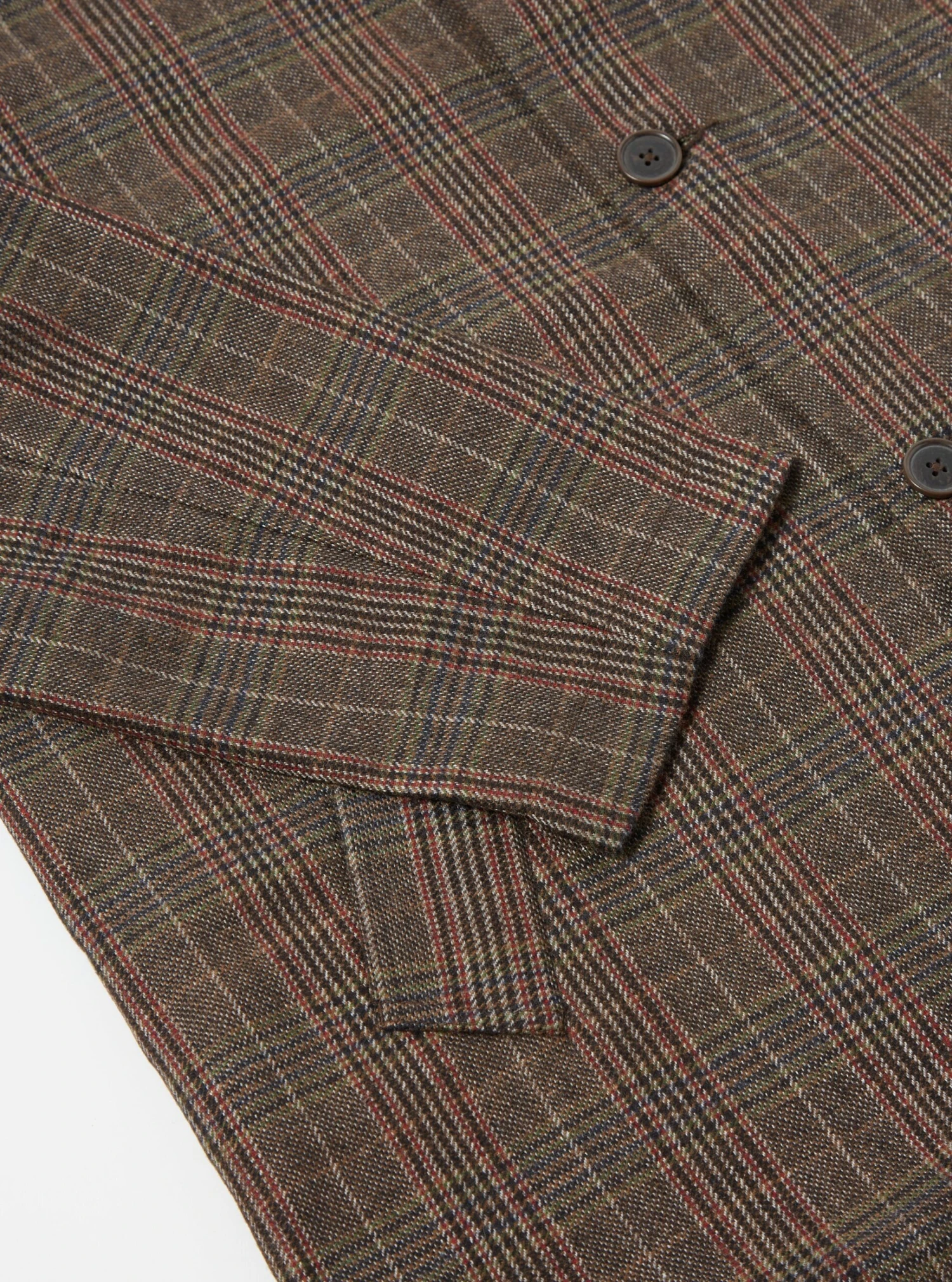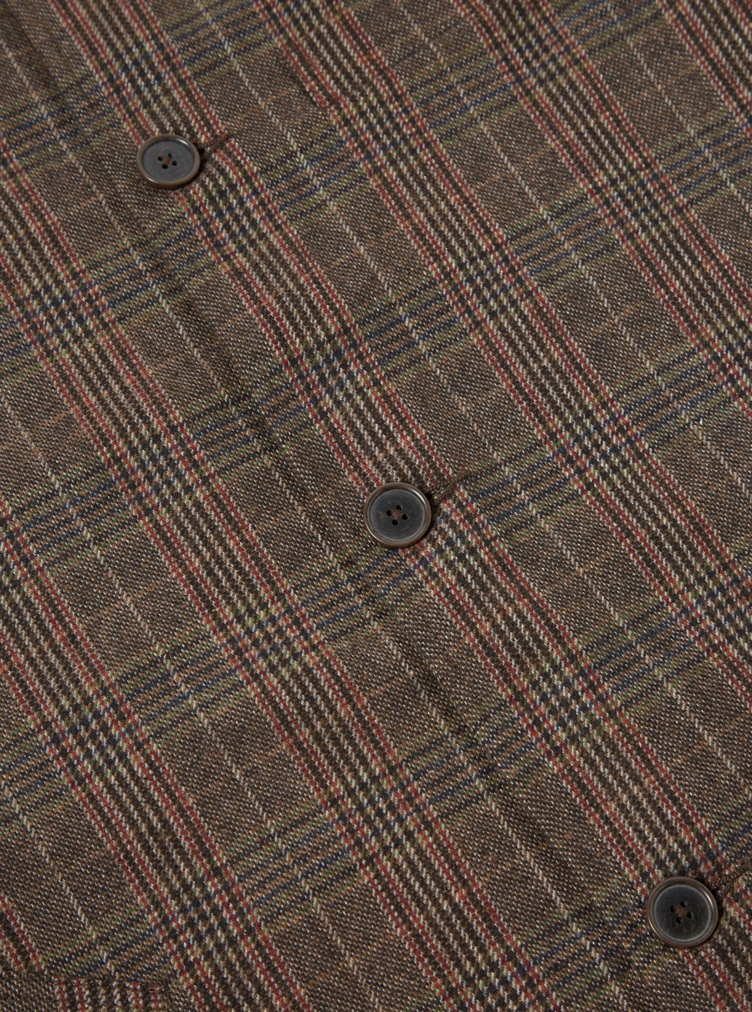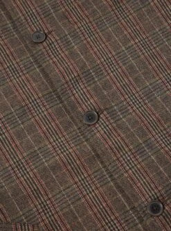 A modern take on wool mix winter fabric: a brown and red mix of traditional-looking tweed.
