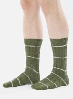 Universal Works Slub Sock In Olive Tie Dye Knit